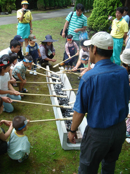 <2007年 東京商事 夏期事業を終えて> 担当幹事 住田・伊藤おもちゃ王国での51日間は9月2日で無事終了いたしました、担当者及び材料の準備などでご協力くださいました方々には厚く御礼申し上げます、また、おもちゃ王国の定時様や田中美香様とスタッフ方々とホテルの河原木様(朝の観察会に毎日同行)にはサポートをしていただきありがとうございました。最初はいろいな面でとまどいがありましたが日に日に担当者の皆さんも慣れて自信がついてきました。 来年もお願いしたいと言う要請がありますのでこの経験を生かし、プログラムの充実を図っていきたいとおもいます。 担当者の日数(敬称略) 斉藤14日・伊藤13日・杉田9日・前川8日・住田5日・吉田2日 合計51日間 以上日数の多い順番です、お疲れ様でした。
