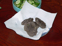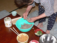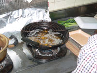 1.黒岩時子さんにクロコの取材 2.取材に応ずる黒岩時子さん 3.クロコ揚げの材料 4.クロコに水を加えて捏ねる 5.ミソとキザミネギを加える 6.混ぜ合わせて、更に捏ねる 7.適量取って、煎餅状にする 8.煎餅状にして、油で揚げまる 9.揚げる前に一寸、形を修正 10.揚げの具合はこのようです 11.クロコ揚げの完成品です 12.試食の感想は如何ですか 13.試食、大満足そうです 14.時子さん良かったですね 15.クロコプロジェクトの看板
