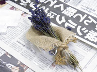 体験プログラム「森林セラピー&ハーブクラフト」の内容は、森林セラピスト・アロマテラピーアドバイザーの私木村が、パワーポイントを使って森林浴と植物や香りの効果をプレゼンテーションする。そのあとに地元のラベンダー園経営&栽培者である桜井講師がラベンダーとローズのドライフラワーを使ったハーブクラフトを2種作成するというもの。ラベンダー&ローズのハーブで、室内は濃厚な香りにつつまれていた。3日間のスタートの講座としては、幸先の良いスタートである。