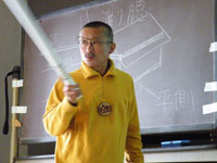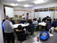 齊梧講師は登山家として、また登山ガイドとしてのリスクを本当によく勉強して来た人である。リスクマネジメント、指導者の義務、事故発生時の連絡体制、救助要請の知識、指導者の法的責任、保険の知識…などについて一通り勉強し、簡単な演習問題を解いた。その後、実際に登山コースを設定しそこでツアー中に事故が起こったと仮定し、どうするかをワークショップ&発表した。