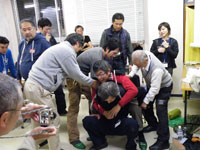 しかし、会場を急遽、大会議室から小会議室に変更し狭くなってしまったこともあり、とてもやりにくそうであった。また、齊梧講師にとっては合わせて3.5時間の持ち時間も、足りなかったようだ。ロープワークの練習やレスキュー訓練は、専門的であり、それだけ時間もかかる。今後、この分野はフォローアップ講座を実施することができたらと考えている。
