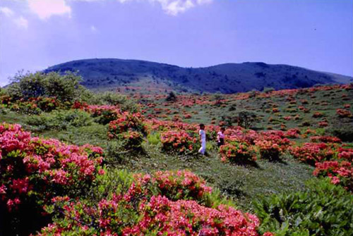 湯の丸牧場の開設により低木樹の新芽や草は家畜の飼料となりやがて草原と化していきましたが、レンゲツツジは牛馬の忌避植物であったため食べられず群落が形成されていきました。そして昭和31年5月15日には国指定天然記念物の指定がなされました。天然記念物指定地域は海抜1,585mから湯の丸山頂の2,101mに及び、面積は272haもあります。
